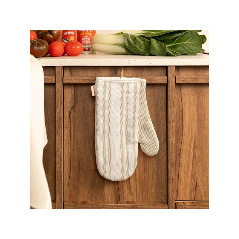 Pensée pour être aussi fonctionnelle qu’élégante, la moufle est dotée d’un isolant thermique performant qui protège efficacement de la chaleur lors de la sortie de vos plats du four. Sa forme enveloppante assure une bonne prise en main, tandis que son œillet permet de l’accrocher facilement et de l’avoir toujours à portée de main.