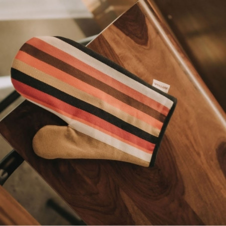 Ses rayures chaleureuses et automnales, associant bruns, rouges et orangés, apportent une touche élégante et festive à votre cuisine.