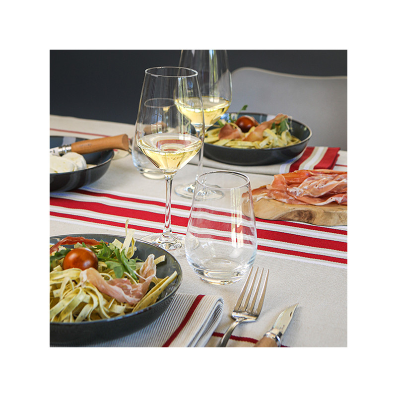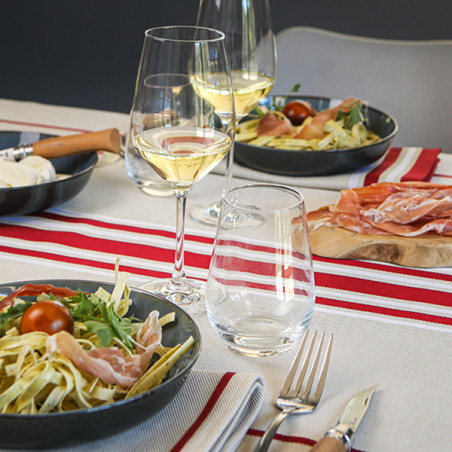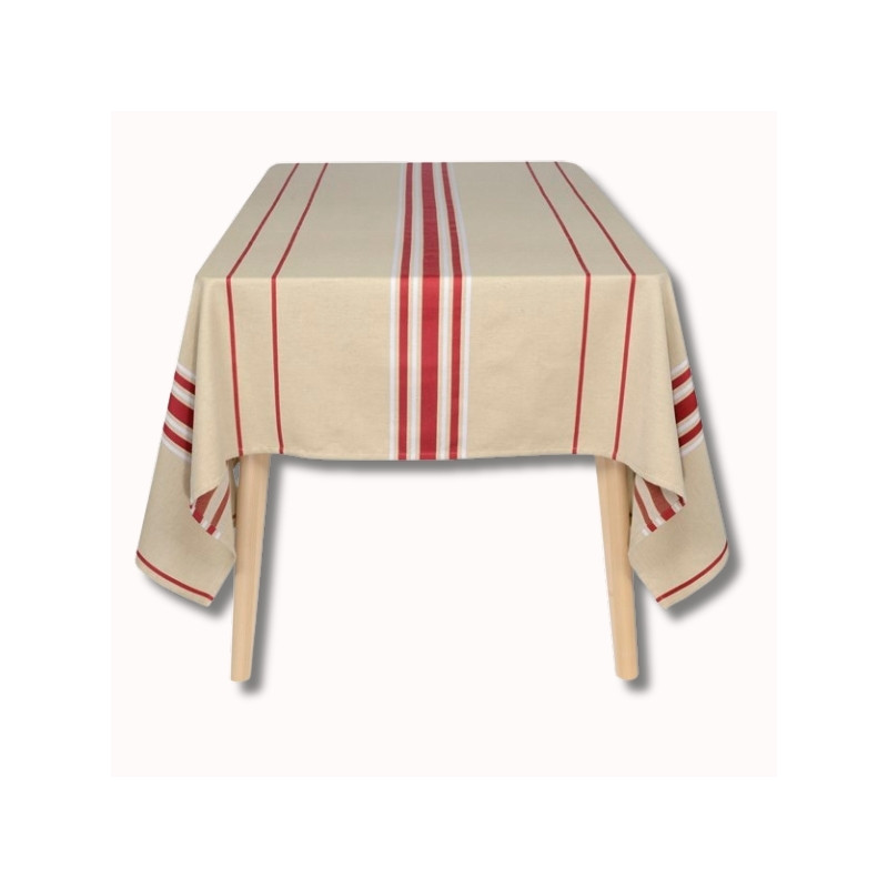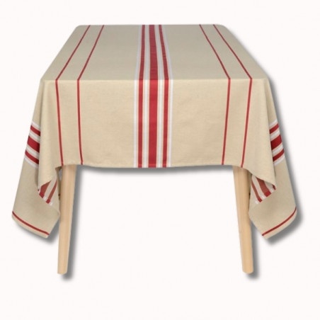La nappe Corda est en tissu naturel 70% coton et 30% lin, créée et confectionnée dans notre atelier situé dans le Sud-Ouest, dans le respect des tissages traditionnels basques.