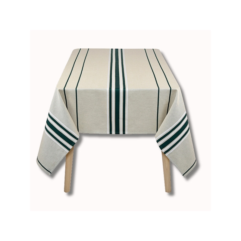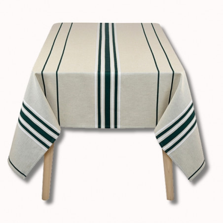La nappe Corda est en tissu naturel 70% coton et 30% lin, créée et confectionnée dans notre atelier situé dans le Sud-Ouest, dans le respect des tissages traditionnels basques.