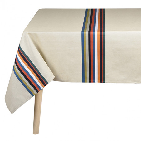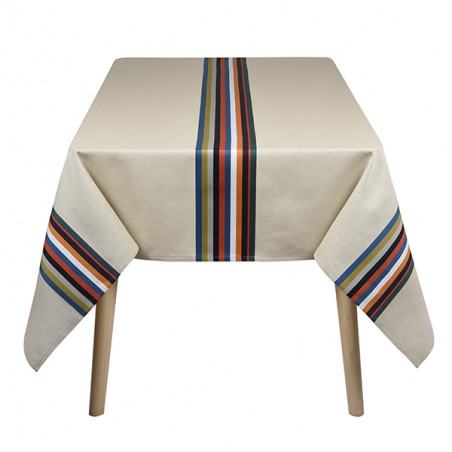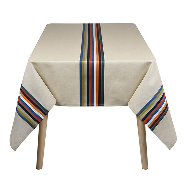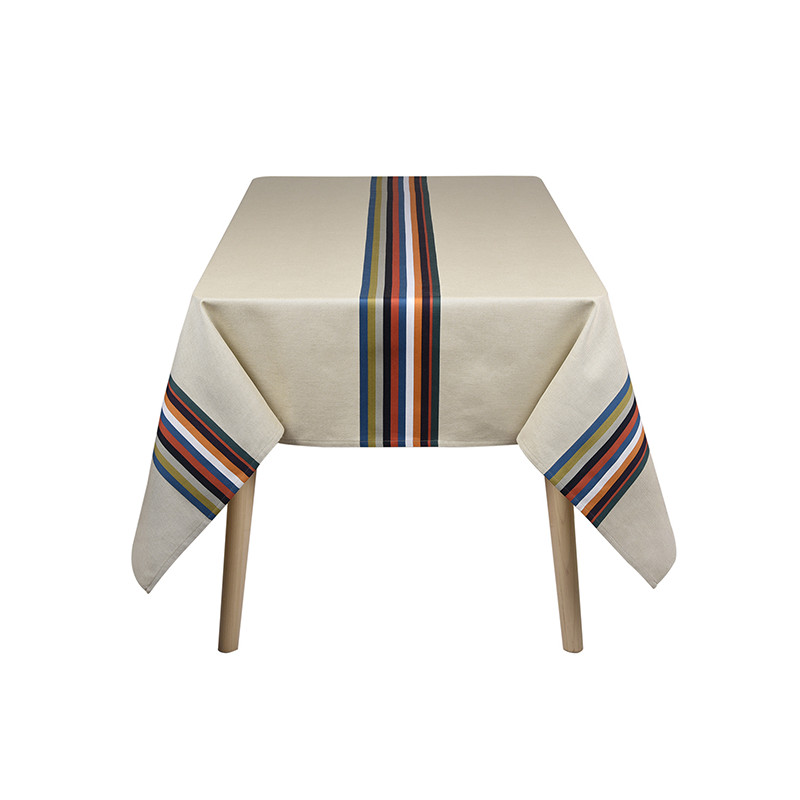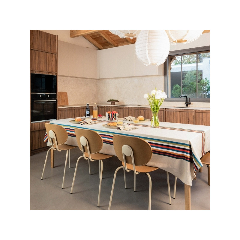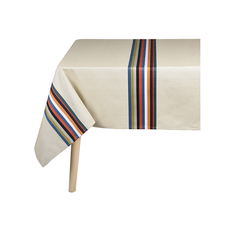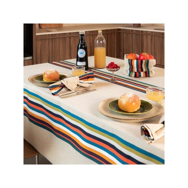 La nappe Mauléon Canard est en tissu naturel 70% coton et 30% lin, créée et confectionnée dans notre atelier situé dans le Sud-Ouest, dans le respect des tissages traditionnels basques.