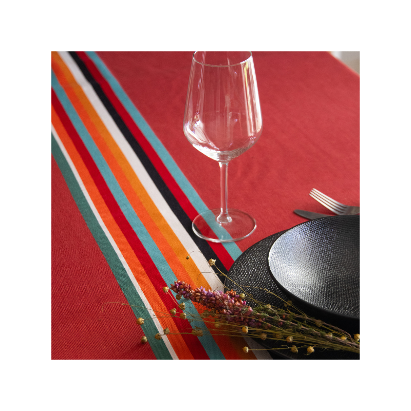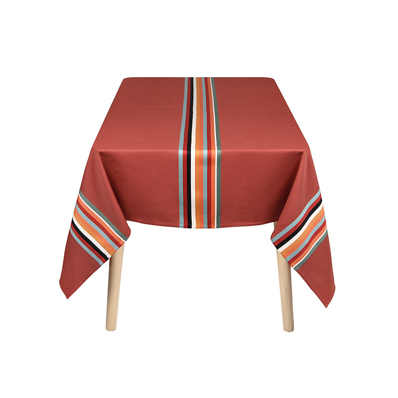 La nappe Mauléon Acajou est en tissu naturel 100% coton issu de l'agriculture biologique, créée et confectionnée dans notre atelier situé dans le Sud-Ouest, dans le respect des tissages traditionnels basques.