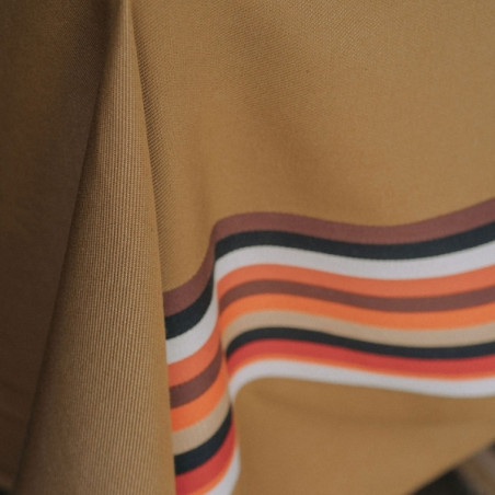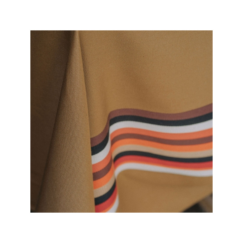 Ses rayures emblématiques, inspirées de la toile d’espadrille, se déclinent sur un fond uni aux tons chauds et automnaux.