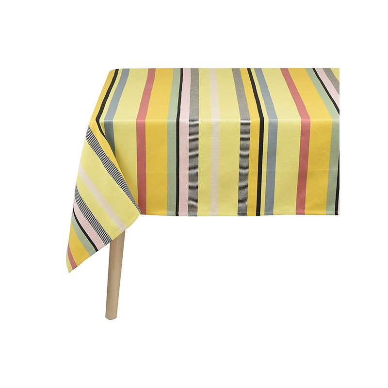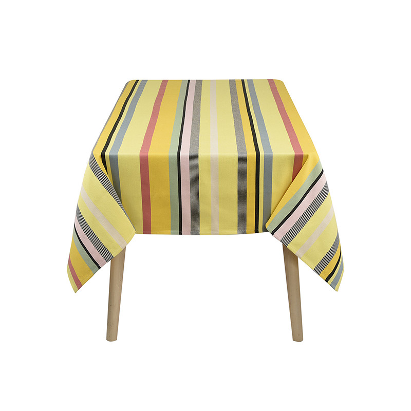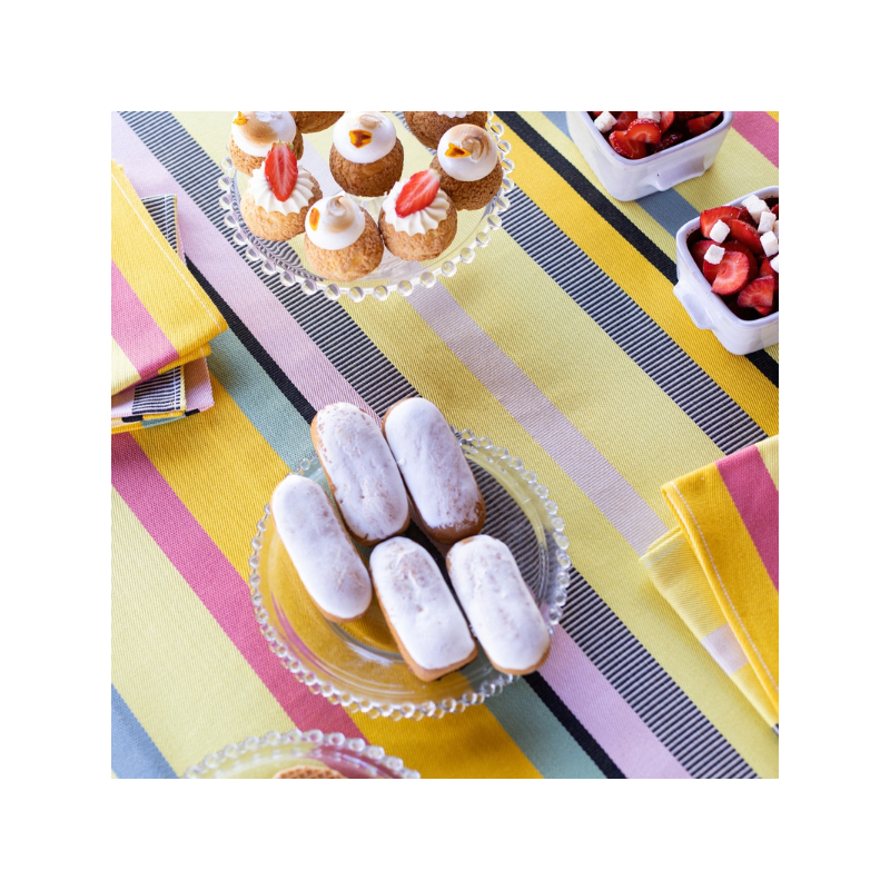 La nappe Mezos est en tissu naturel 100% coton issu de l'agriculture biologique, créée et confectionnée dans notre atelier situé dans le Sud-Ouest, dans le respect des tissages traditionnels basques.