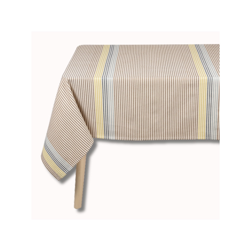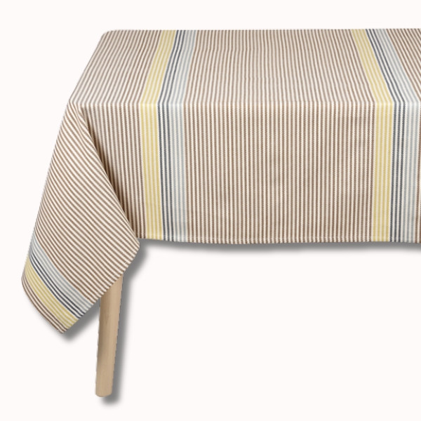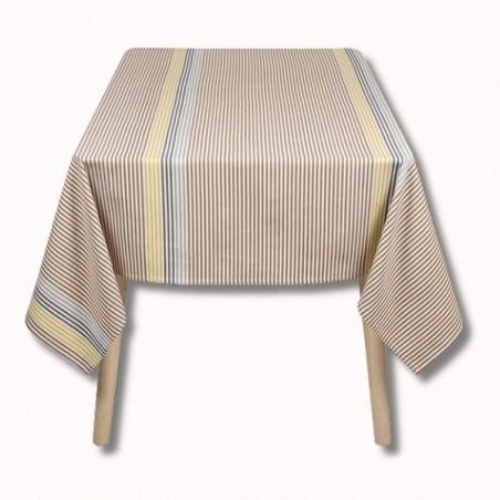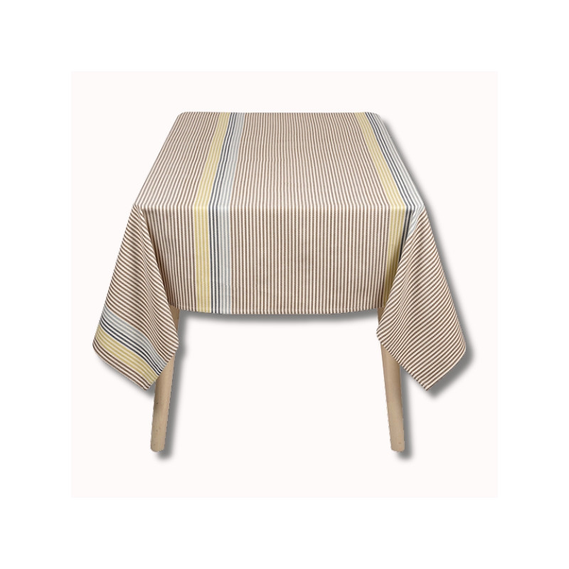 La nappe Samadet est en tissu naturel 100% coton issu de l'agriculture biologique, créée et confectionnée dans notre atelier situé dans le Sud-Ouest, dans le respect des tissages traditionnels basques.