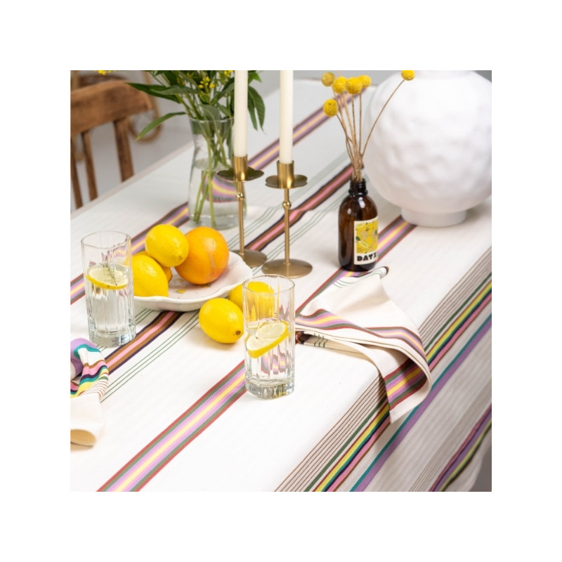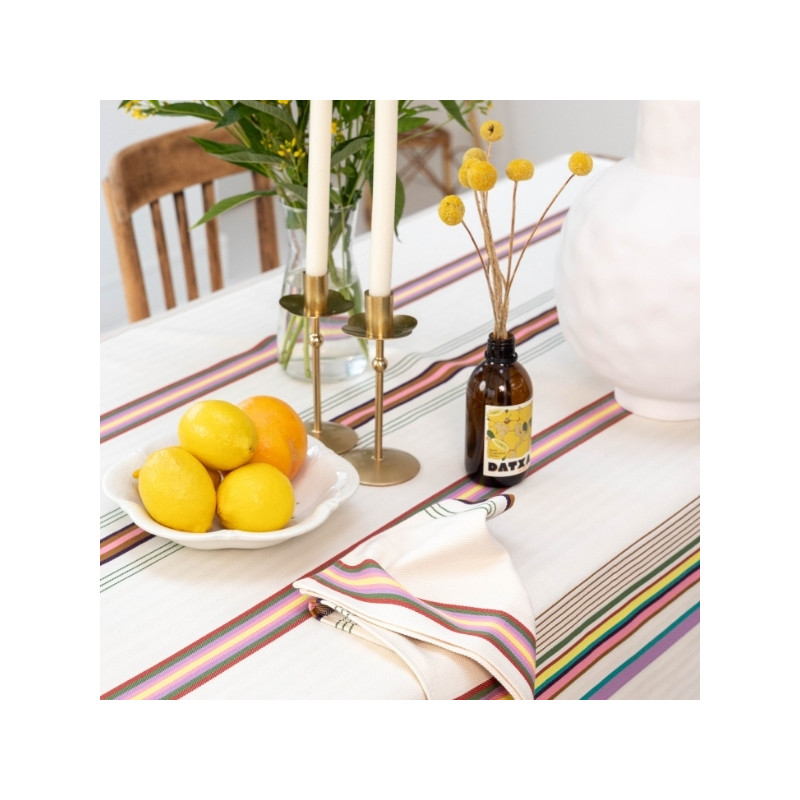 Pensée pour durer, la nappe SORE est facile d’entretien : elle se lave aisément et conserve l’éclat de ses couleurs au fil du temps. Pour une table harmonieuse, associez-la à nos serviettes de table, sets et corbeilles assorties.
