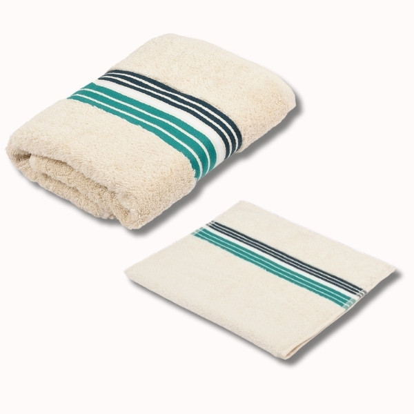 - 100% coton éponge naturel, coloris écru rayé menthe