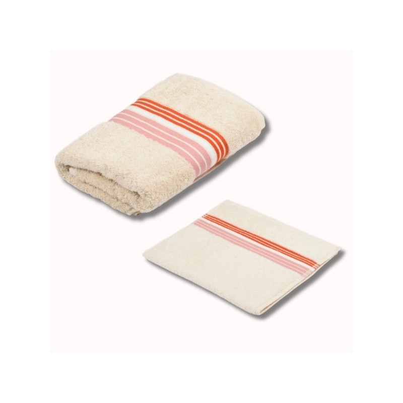 - 100% coton éponge naturel, coloris écru rayé oeillet