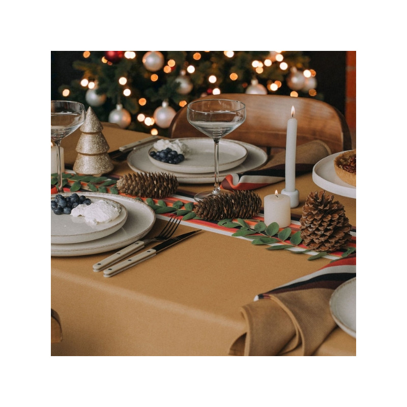 Pack composé d’une nappe Mauléon Vison 170×170 cm (4 couverts) et de 4 serviettes assorties 53×53 cm. 100% coton, confection française. Parfait pour une table de Noël chaleureuse, authentique et élégante.