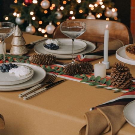 Pensé pour les petits repas de fêtes, ce set textile revisite le motif emblématique Mauléon, inspiré de la toile d’espadrille, dans une version chaleureuse et automnale.