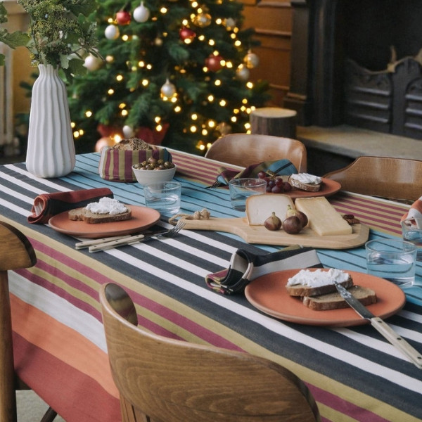 Les rayures Cazalis créent une atmosphère chaleureuse, lumineuse et festive — parfaite pour sublimer vos repas de Noël, vos tables d'hiver ou vos grandes réunions familiales.