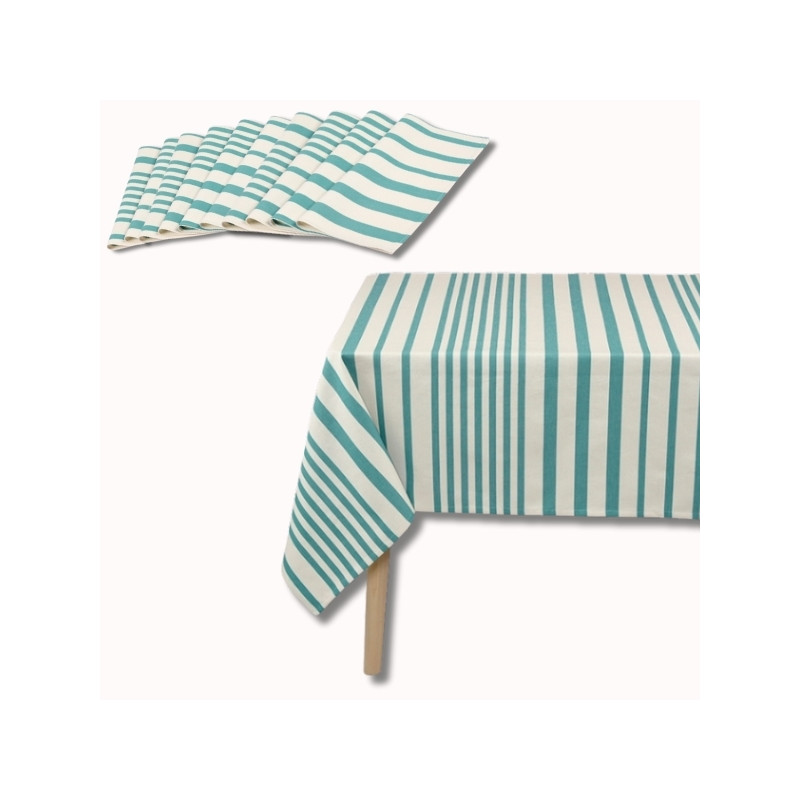 Leur motif à rayures vertes, inspiré des citronniers et oliveraies baignés de soleil, apporte fraîcheur et raffinement à votre décoration de table. Idéal pour de grandes tablées familiales ou amicales, ce pack harmonisé crée une atmosphère conviviale et lumineuse.