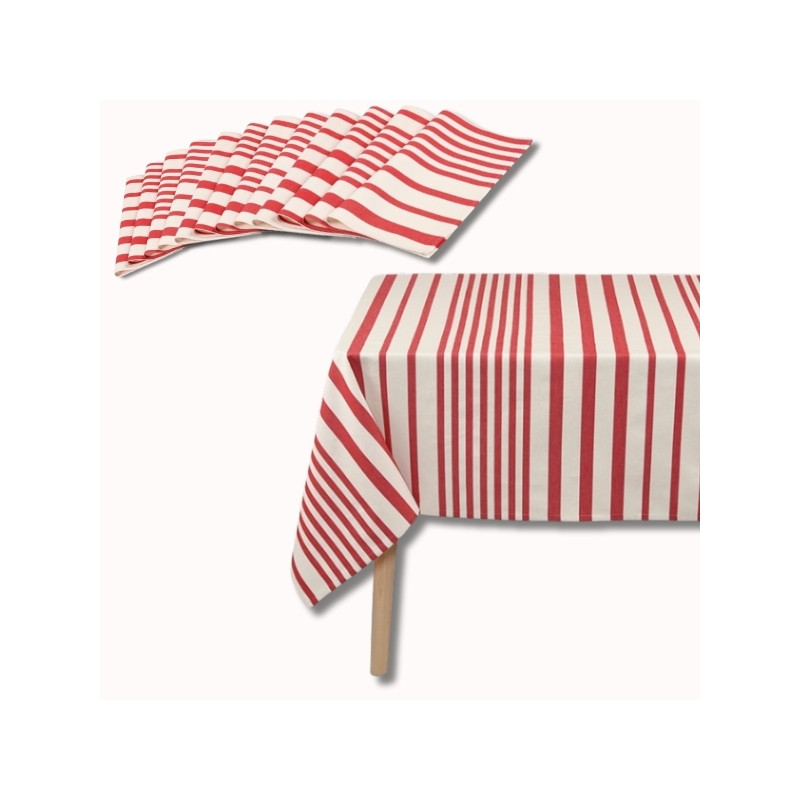 Leur motif à rayures rouges, inspiré de la convivialité des terrasses méditerranéennes, crée une ambiance chaleureuse et élégante autour de la table. Ce pack harmonisé est idéal pour les grandes réunions familiales ou les repas festifs, où chaque détail compte.
