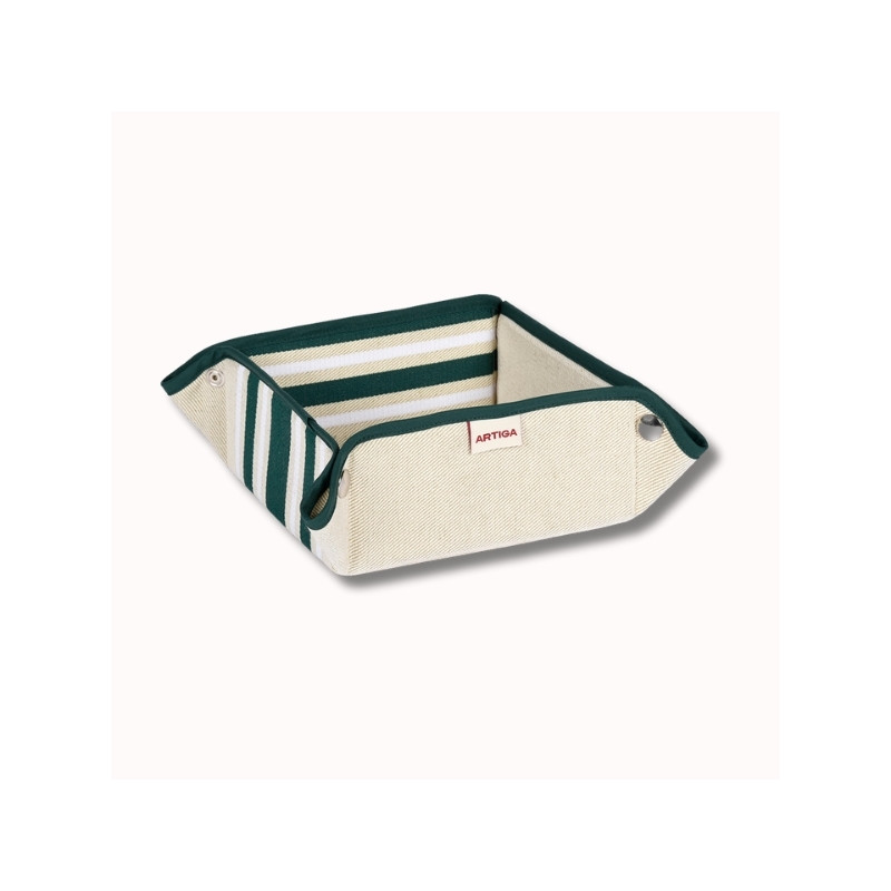 La panière Corda Vert Bouteille / Blanc incarne l’élégance intemporelle de l’univers Héritage. Réalisée en toile métis 70% coton 30% lin, elle s’inspire directement du linge basque traditionnel. À la fois pratique et décorative, cette panière de 17x17x8 cm est idéale pour organiser le quotidien tout en apportant une touche authentique et chaleureuse à la maison. Confectionnée dans le Sud-Ouest, elle reflète le savoir-faire textile français et l’ADN d’Artiga.
