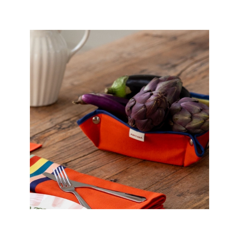Grâce à ses bords pressionnés, la panière se déploie facilement et conserve une belle structure. Elle trouve naturellement sa place sur une table, un plan de travail ou une étagère pour accueillir pain, fruits, serviettes, accessoires ou petits objets du quotidien.