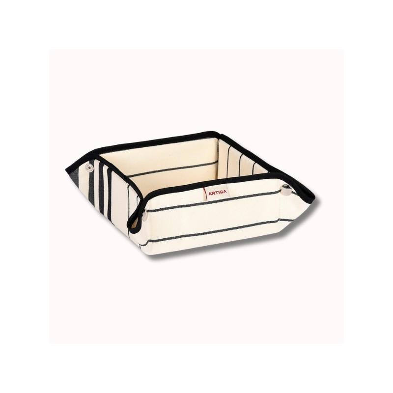 Confectionnée en 100 % coton, cette panière se distingue par ses rayures fines noir et écru, élégantes et graphiques. Un motif discret qui apporte du caractère tout en restant facile à associer, aussi bien dans une cuisine, une salle de bain que sur une table.