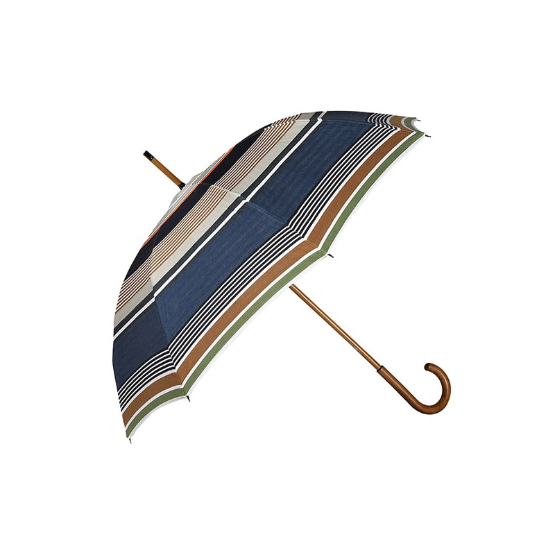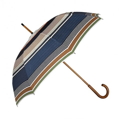 Il se distingue par sa toile enduite aux rayures Argelos, résistante et élégante, et par sa structure robuste équipée d’une poignée courbe en bois offrant confort et raffinement. Sa longueur de 90 cm fermé lui confère une belle prestance et une protection efficace contre la pluie.