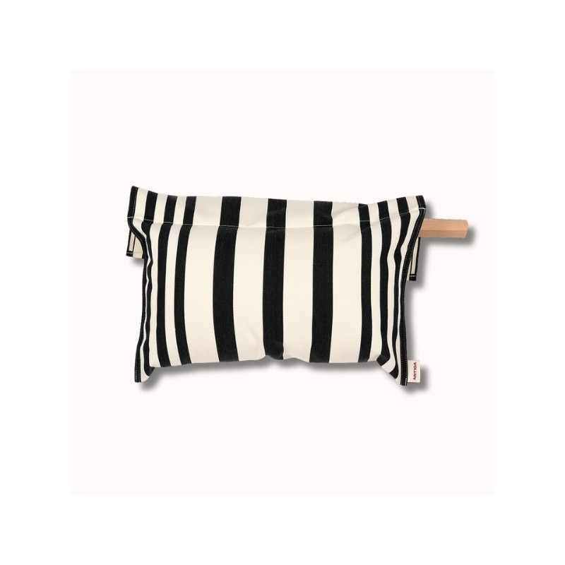 Le motif Adour Noir, revisite la rayure basque dans une version graphique et élégante. Ses contrastes noir et écru apportent une touche contemporaine et intemporelle, s’intégrant aussi bien dans un univers bord de mer que dans un intérieur plus urbain et épuré.