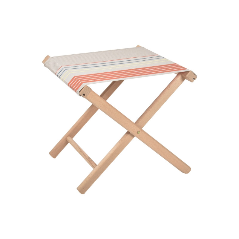 La toile Outdoor prête à poser pour pliant pêche, 50 x 42 cm, finition ourlé de 5 cm et deux retours pour fixer les embouts en bois, est créée et imaginée par nos stylistes et tissée dans la vraie tradition des toiles basques.