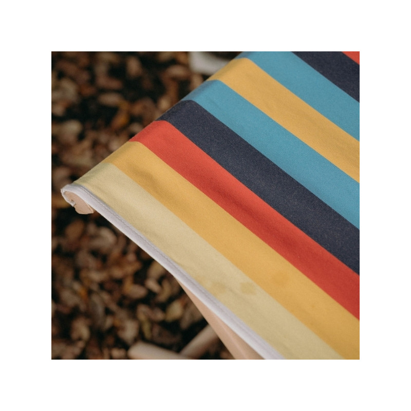 Sa structure en bois de hêtre naturel lui confère solidité et stabilité. Cette essence est reconnue pour sa résistance et sa longévité, tout en apportant une esthétique naturelle et authentique. Grâce à son système de pliage simple, le siège se replie facilement pour un rangement ou un transport pratique.