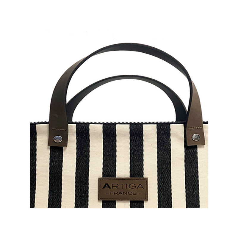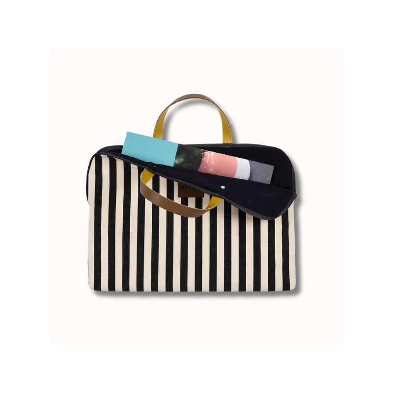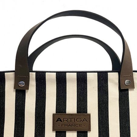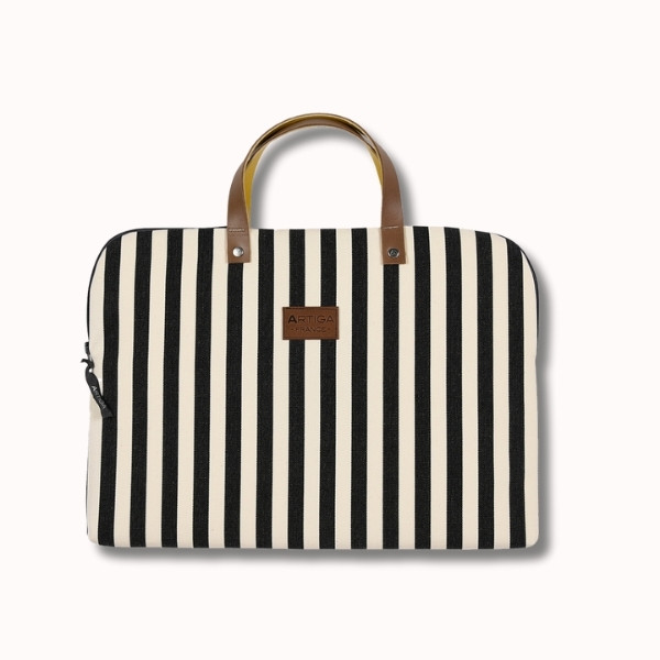 Notre porte document, 29 x 40 x 2.5 cm, est en tissu naturel 100% coton issu de l'agriculture biologique, créé et confectionné dans notre atelier situé dans le Sud-Ouest, dans le respect des tissages traditionnels basques.