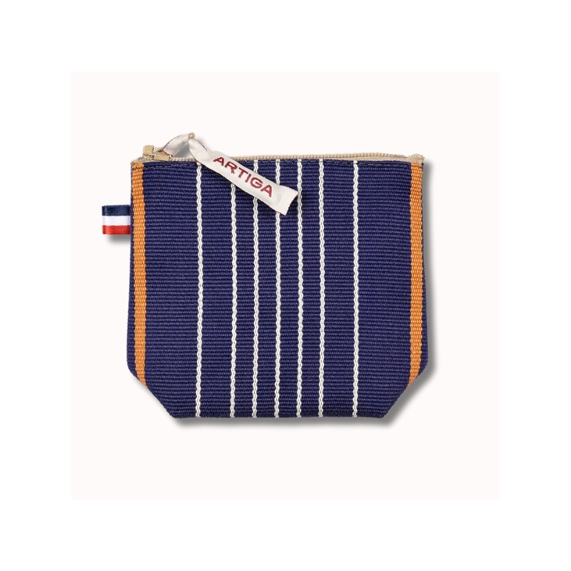 Le porte-monnaie Sauvelade Marine est un accessoire compact et pratique, confectionné en toile espadrille. Ses rayures bleu marine, ocre et écru lui confèrent une élégance intemporelle inspirée des traditions du Sud-Ouest. Avec son format 11 x 9 cm et sa fermeture zippée sécurisée, il permet de transporter monnaie, cartes et petits objets en toute simplicité. Fabriqué en France, il incarne le savoir-faire artisanal et la qualité Artiga.