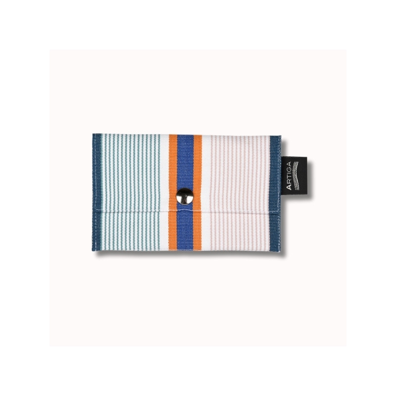 Notre porte feuille, 11 x 15 cm, fabriqué à partir de nos toiles espadrille, est en tissu naturel 100% coton issu de l'agriculture biologique, créé et confectionné dans notre atelier situé dans le Sud-Ouest, dans le respect des tissages traditionnels basques.