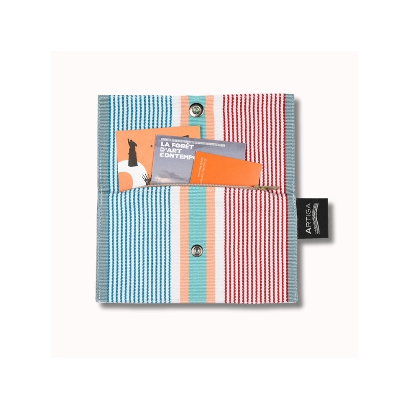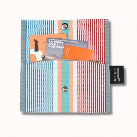 Notre porte feuille, 11 x 15 cm, fabriqué à partir de nos toiles espadrille, est en tissu naturel 100% coton issu de l'agriculture biologique, créé et confectionné dans notre atelier situé dans le Sud-Ouest, dans le respect des tissages traditionnels basques.