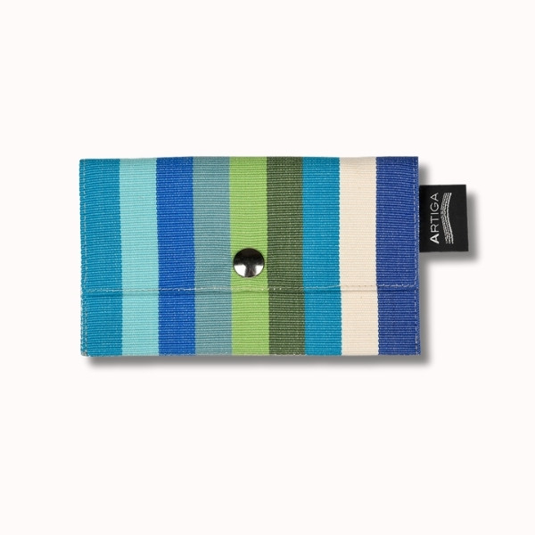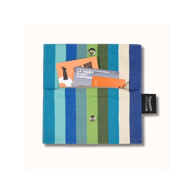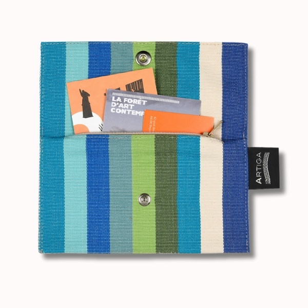Notre porte feuille, 11 x 15 cm, fabriqué à partir de nos toiles espadrille, est en tissu naturel 100% coton issu de l'agriculture biologique, créé et confectionné dans notre atelier situé dans le Sud-Ouest, dans le respect des tissages traditionnels basques.