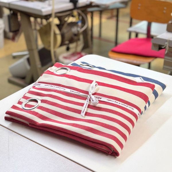 Les rideaux Adour Rouge portent en eux une histoire singulière. Initialement confectionnés à la suite d’une commande frauduleuse, ils ont mobilisé plus de 2700 minutes de travail artisanal dans notre atelier de Magescq, où nos couturières ont posé avec soin plus de 1600 œillets. Plutôt que de céder à la déception, nous avons choisi de leur offrir une seconde vie en les mettant à disposition de nos clients à un tarif spécial.