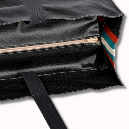 Avec son grand format (52 x 16 x 42 cm) et son fond rigide et renforcé, il offre une capacité idéale pour transporter toutes vos courses, documents ou affaires personnelles en toute sécurité. Son zip de fermeture protège efficacement son contenu, ajoutant une touche de praticité à son design épuré.