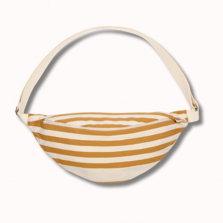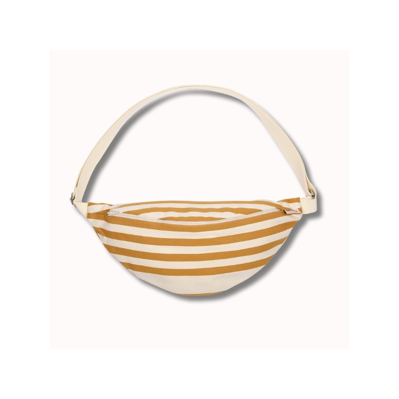 Inspiré de l’univers “Les Pins Salés”, le sac banane Adour Curry évoque l’atmosphère douce des maisons de vacances : des matières naturelles, un fond écru lumineux et une rayure curry chaleureuse, facile à associer au quotidien.
