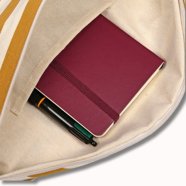 Confectionné à partir de notre toile transat Adour Curry, il combine style et praticité : une fermeture zippée sécurisée, un intérieur doublé en toile écrue unie, et une poche ouverte sur toute la largeur pour organiser vos essentiels.