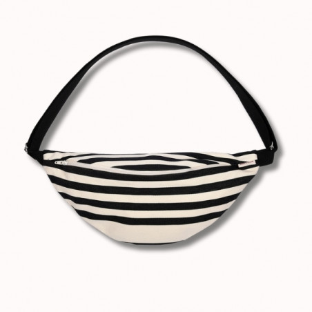 Le sac banane Adour Noir revisite un indispensable du quotidien avec élégance et caractère. Confectionné à partir de notre toile transat iconique, il se distingue par ses rayures noires et écrues, emblématiques de l’univers Artiga et de notre savoir-faire textile.