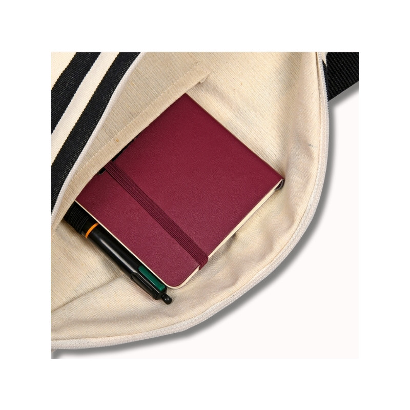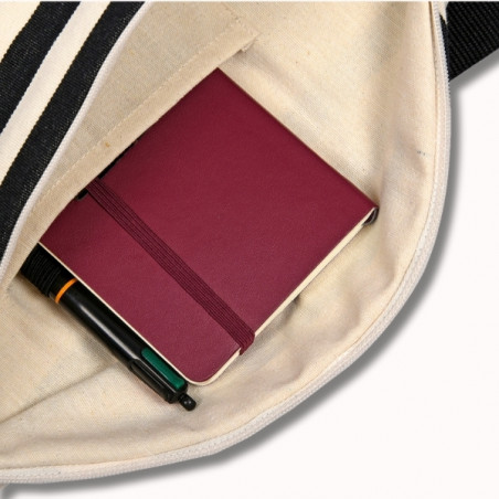 Compact mais fonctionnel, ce sac banane en coton offre un volume idéal pour transporter vos essentiels : téléphone, portefeuille, clés ou carnet. Son intérieur doublé en toile écrue unie apporte une finition soignée et lumineuse, tandis que la poche intérieure ouverte permet d’organiser facilement vos petits objets.