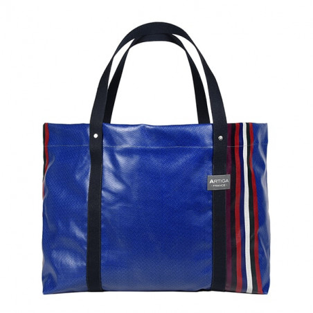 Le sac shopping Charly Chevron Bleu Atoll allie style et praticité grâce à sa toile cirée imperméable et résistante.