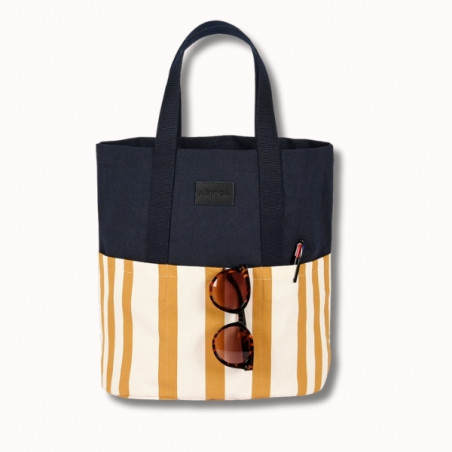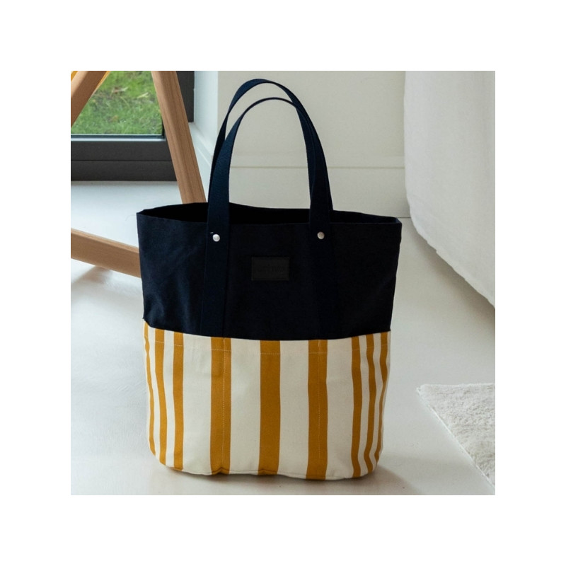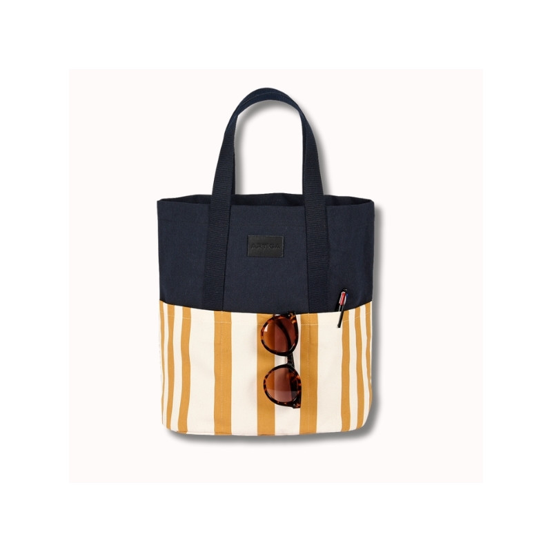 Sac cabas du quotidien, solide et fonctionnel, le sac Laura Adour Curry / Marine associe l’élégance graphique de la toile rayée Adour Curry à la sobriété d’une toile marine unie, rigide et résistante. Conçu pour accompagner toutes vos journées, il offre de multiples rangements extérieurs et une tenue impeccable grâce à son fond ovale doublé.