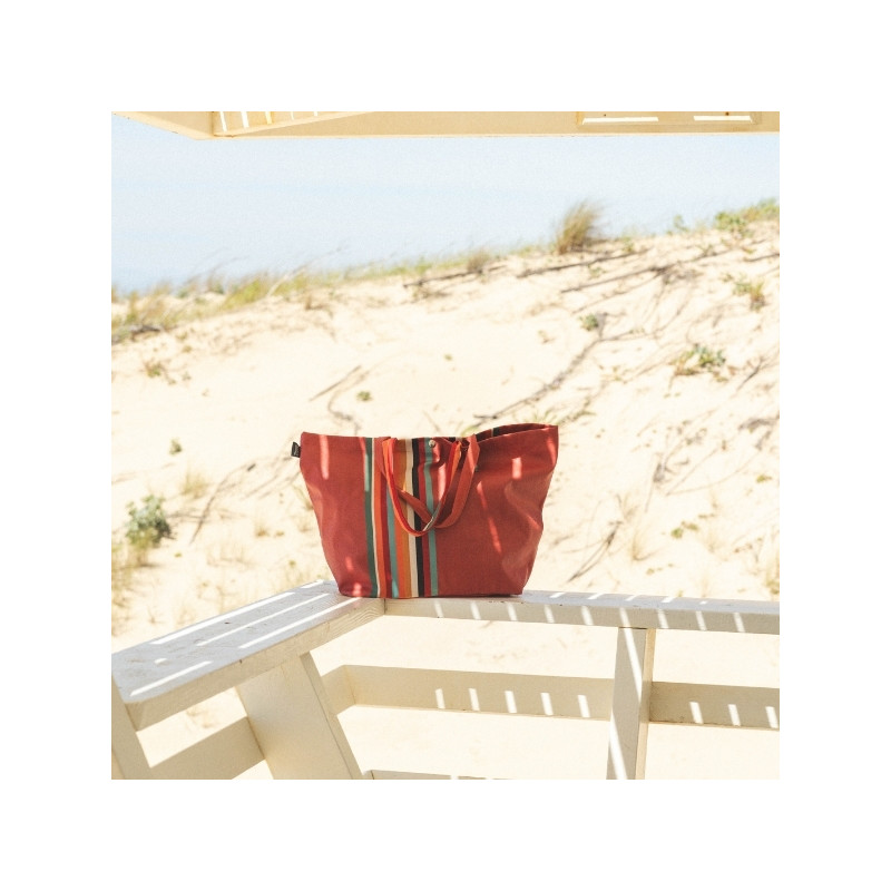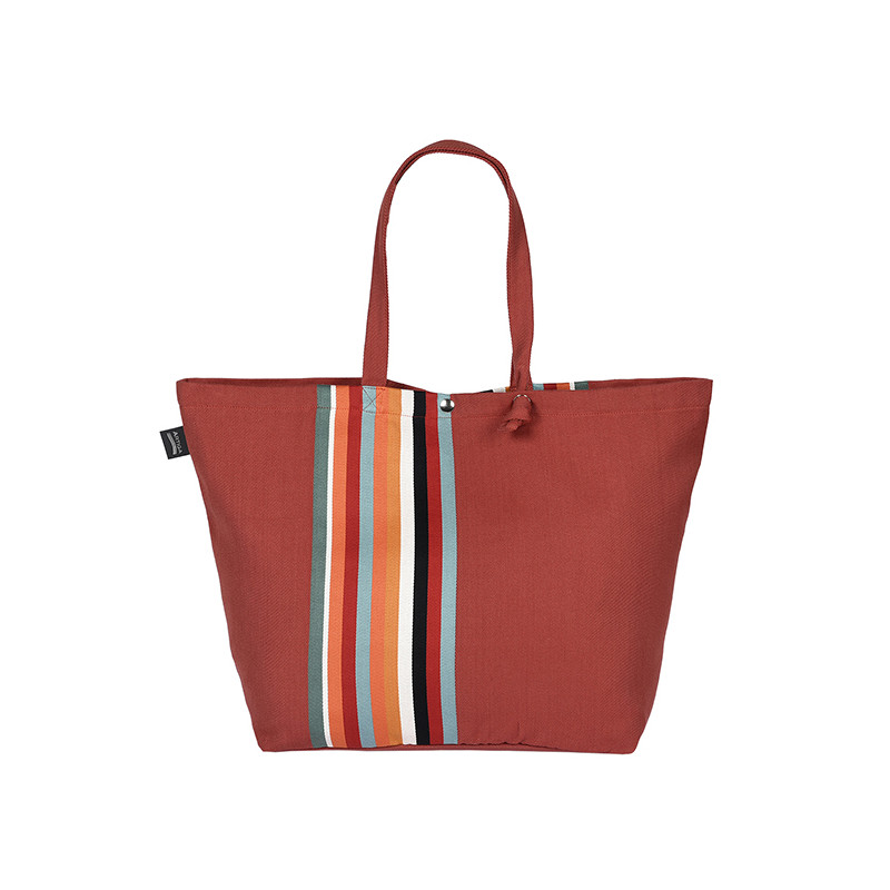 Un sac de grande taille aux rayures acajou, orange brûlé et noir profond, idéal pour toutes vos sorties.