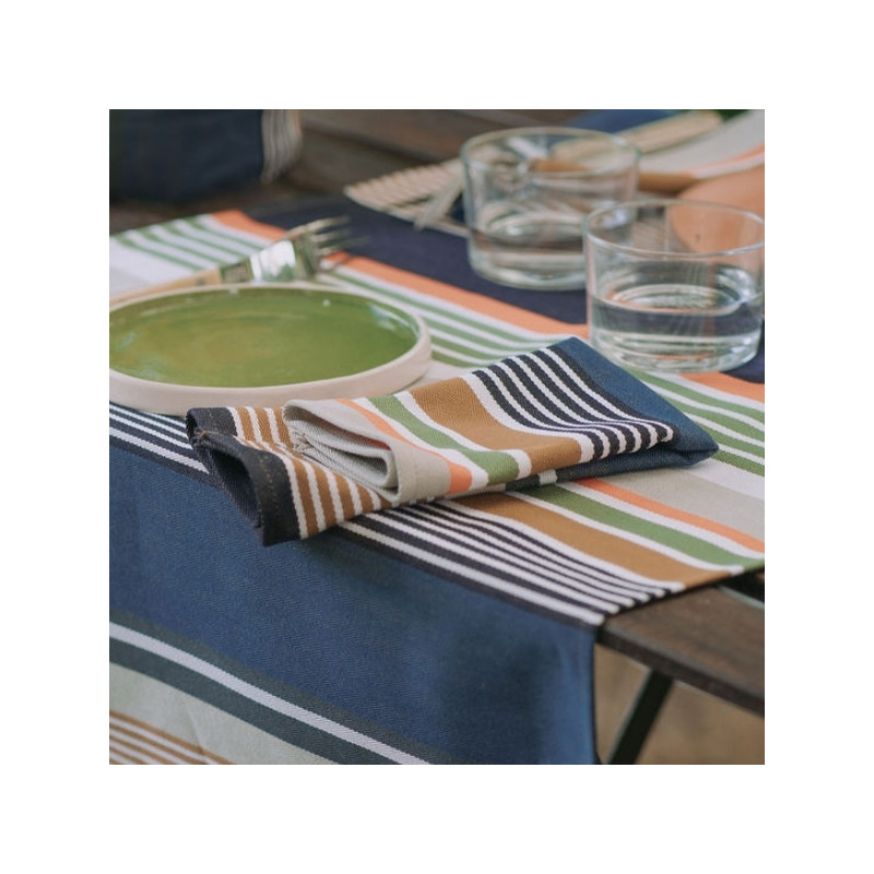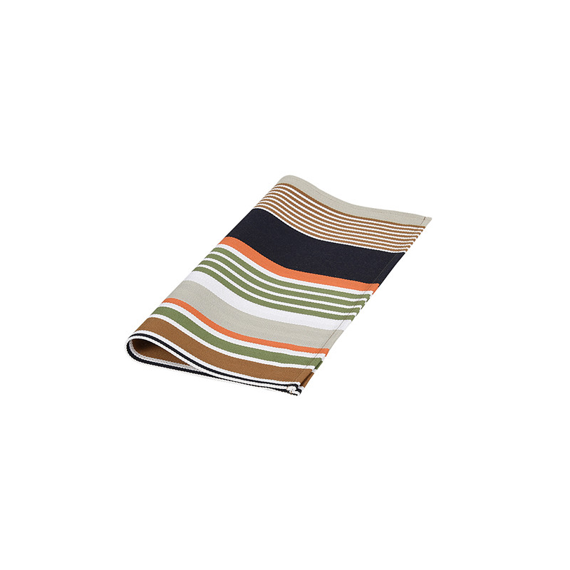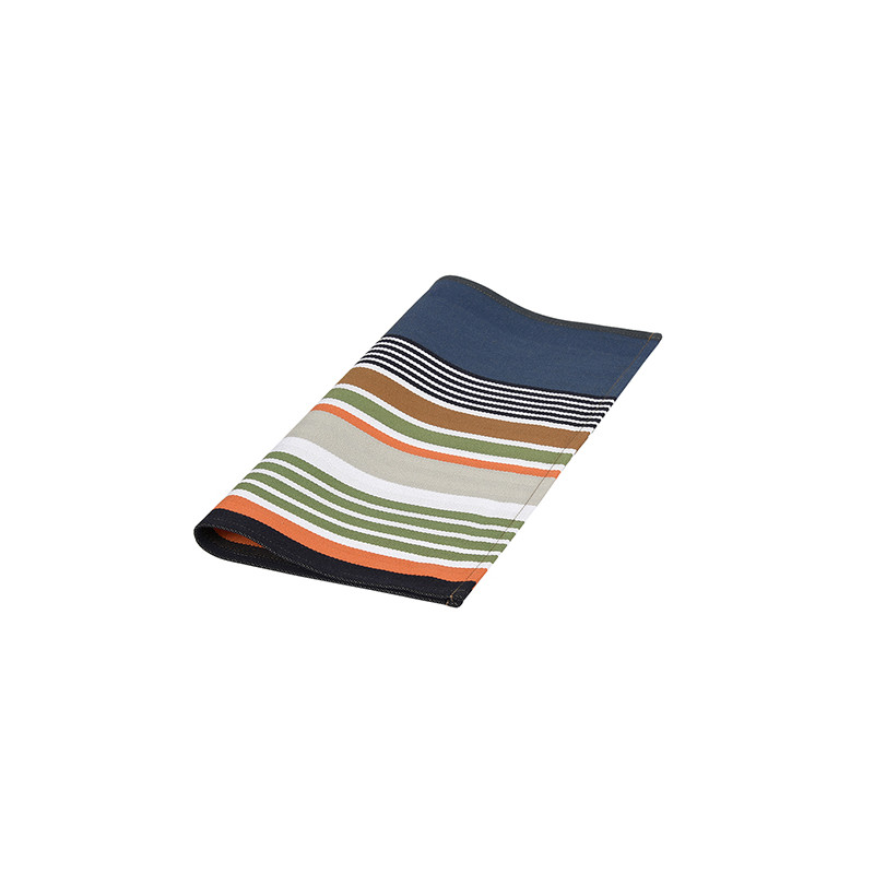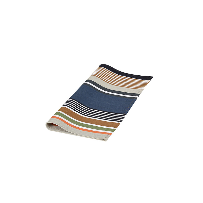 Apportez une touche de caractère à votre table avec la serviette de table Argelos 38x38 cm. Issue de notre collection capsule Automne-Hiver 2025, elle séduit par son jeu de rayures contrastées aux coloris froids relevés par des touches vives.