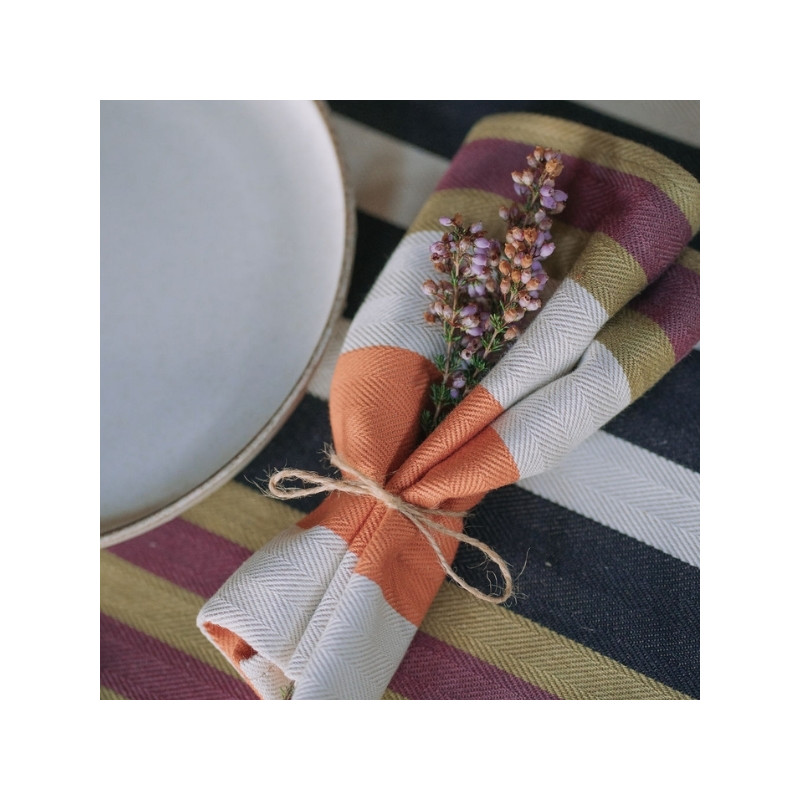 Ses rayures multicolores mêlant des tons chaleureux et modernes en font un élément décoratif incontournable pour vos repas.