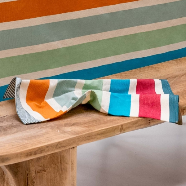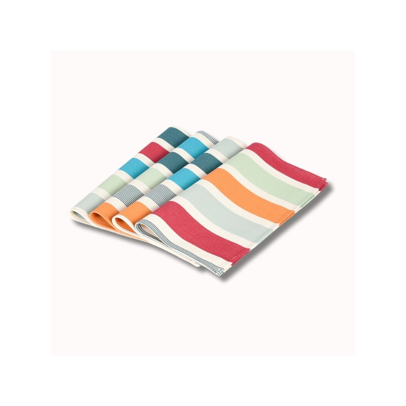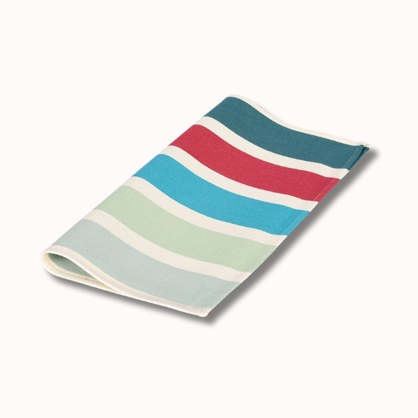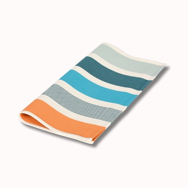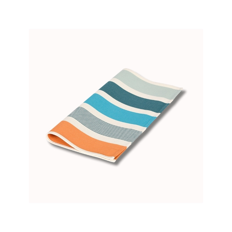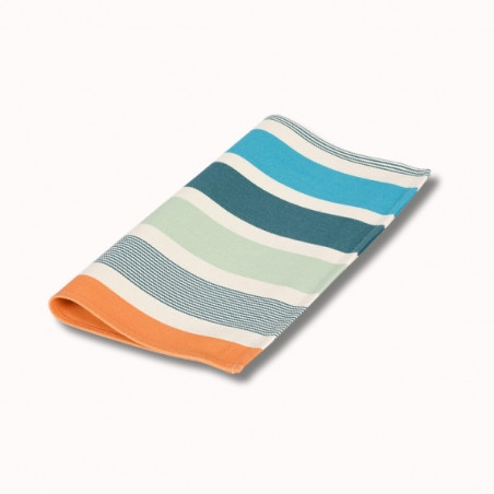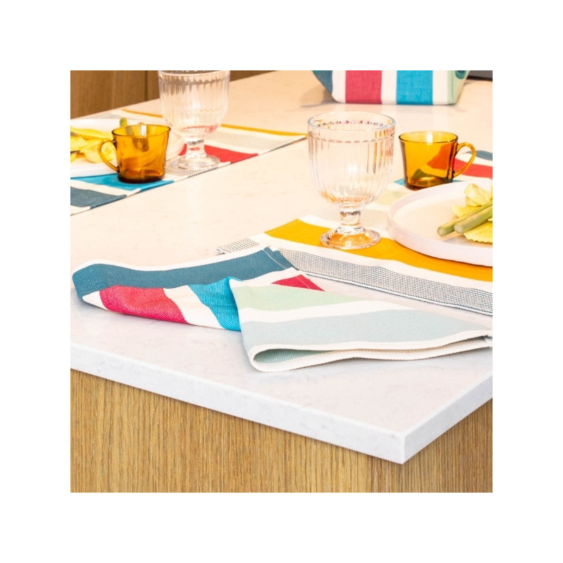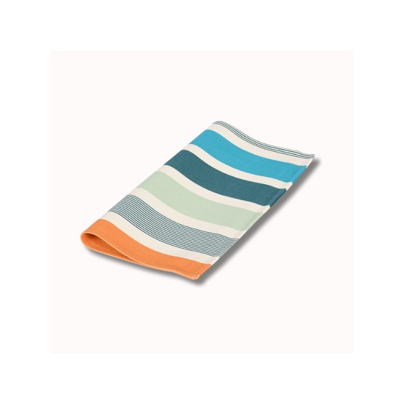 La serviette de table Garlin Celadon apporte une touche lumineuse et raffinée à vos repas, en parfaite harmonie avec l’univers « Matin dans les Landes ». Inspirée des premières heures du jour, cette serviette mêle avec justesse des teintes fraîches de vert céladon, gris vert et turquoise, subtilement réchauffées par des notes orangées et rouges, évoquant la lumière douce d’un lever de soleil à travers les pins landais.