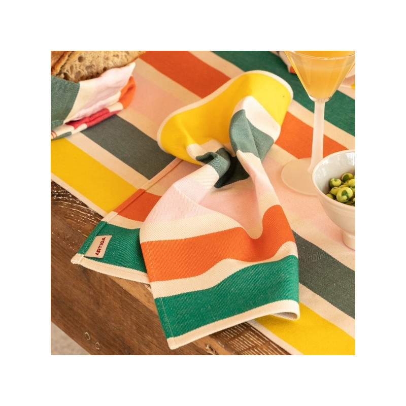 Pensée pour durer, cette serviette de table en coton est facile d’entretien et s’intègre parfaitement avec les nappes, sets de table et accessoires de la même collection. Elle est confectionnée avec soin dans notre atelier du Sud-Ouest, dans le respect du savoir-faire textile Artiga.