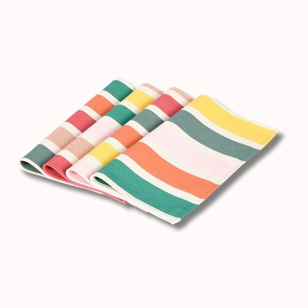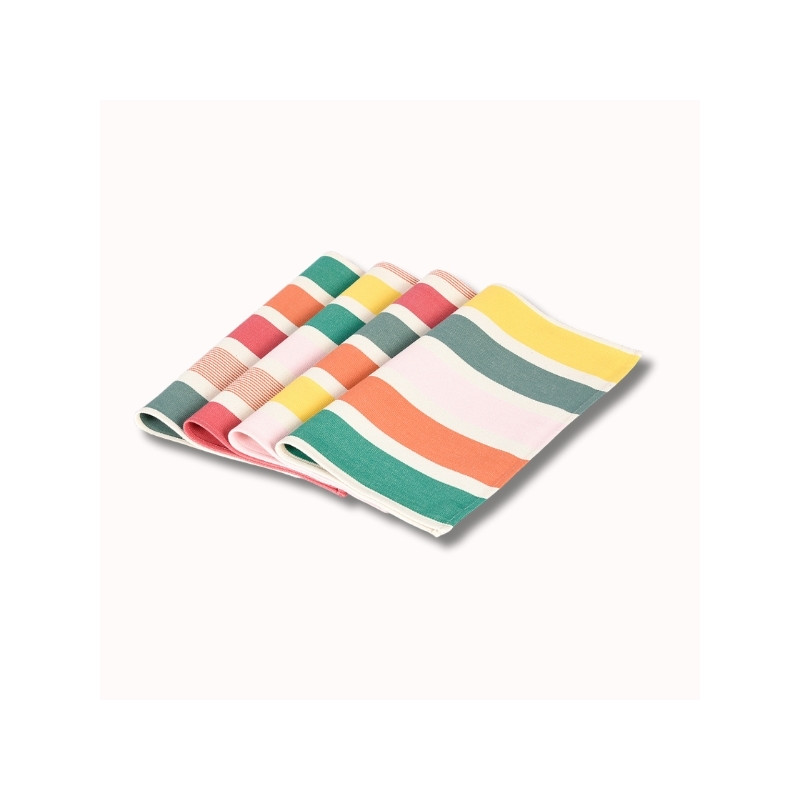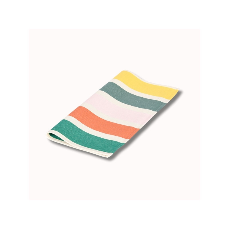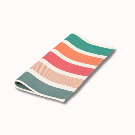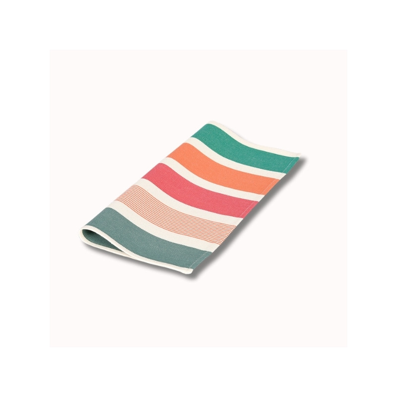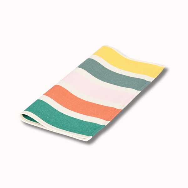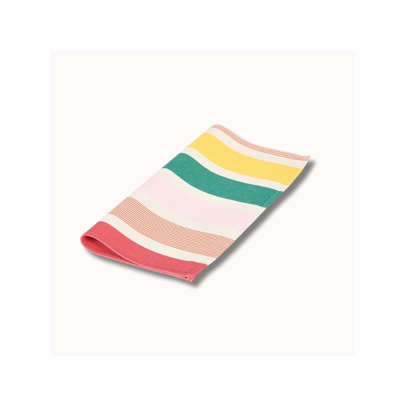 La toile Garlin Melon s’inscrit dans l’univers « Déjeuner sur l’herbe », une ambiance inspirée des pique-niques d’été, des repas en plein air et des moments partagés sous le soleil. Ses rayures fruitées et lumineuses déclinent des teintes de melon, framboise, jaune d’or, rose pâle et verts délicats, évoquant une atmosphère chaleureuse et joyeuse.