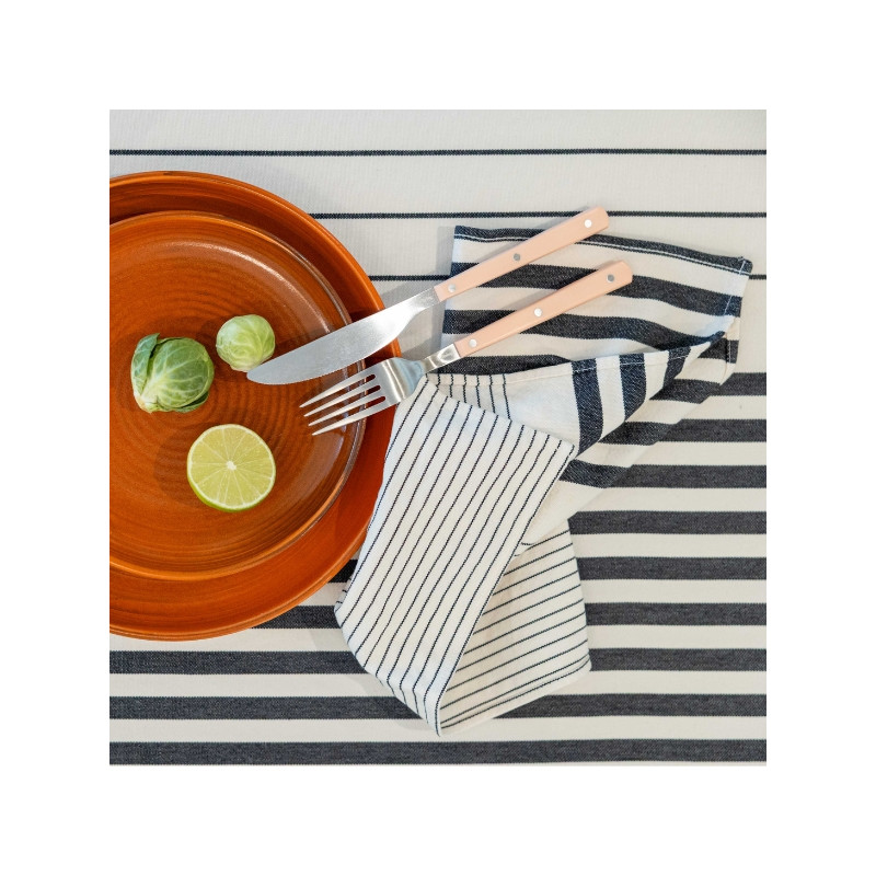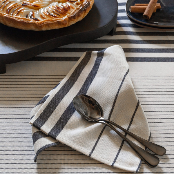 La serviette de table Sauvelade, 38 x 38 cm, est en tissu naturel 100% coton issu de l'agriculture biologique, créée et confectionnée dans notre atelier situé dans le Sud-Ouest, dans le respect des tissages traditionnels basques.