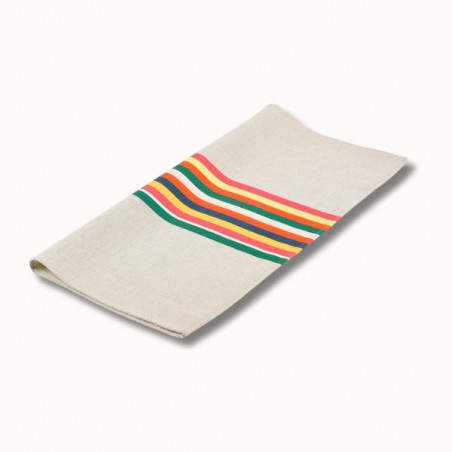 La serviette de table Mauléon, 53 x 53 cm, est en tissu naturel 70% coton et 30% lin, créée et confectionnée dans notre atelier situé dans le Sud-Ouest, dans le respect des tissages traditionnels basques.