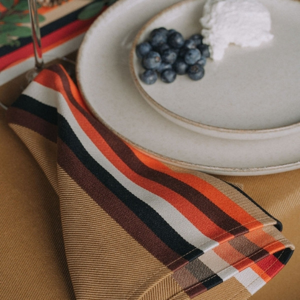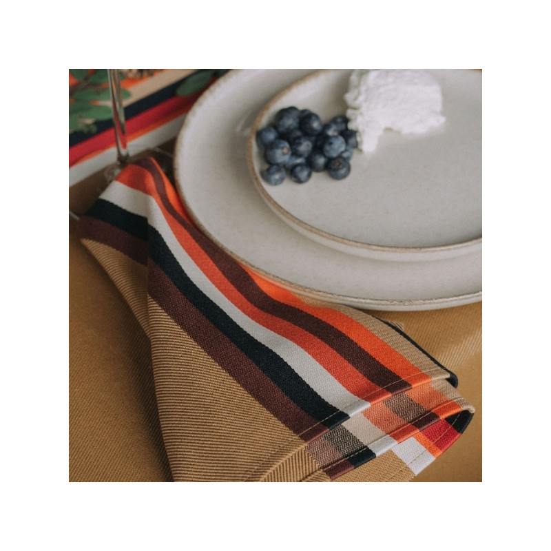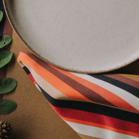 Ses teintes automnales, inspirées du bois, du cuir et des métaux précieux, en font une serviette idéale pour vos repas du quotidien mais aussi pour vos tables de fêtes de fin d’année.
