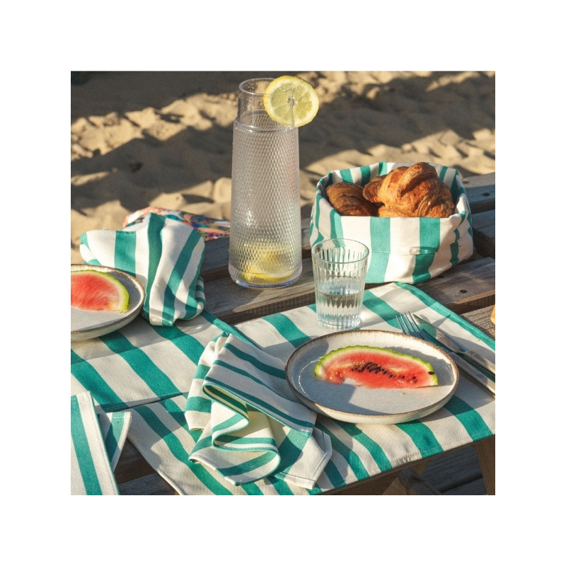 À associer avec nos nappes, serviettes et corbeilles assorties, il permet de créer une table harmonieuse et colorée, évoquant la convivialité et l’élégance des grandes tablées méditerranéennes.