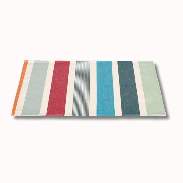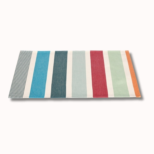 Le set de table en toile enduite Garlin Celadon est pensé pour accompagner votre quotidien avec style, praticité et authenticité. Inspiré de l’univers « Matin dans les Landes », il évoque la douceur des débuts de journée estivaux, lorsque la lumière traverse les pins et réchauffe les paysages du Sud-Ouest. Ses rayures harmonieuses mêlent des tons frais comme le vert céladon, le gris vert et le turquoise, à des touches chaudes orangées et rouges, créant une table à la fois vivante, équilibrée et élégante.
