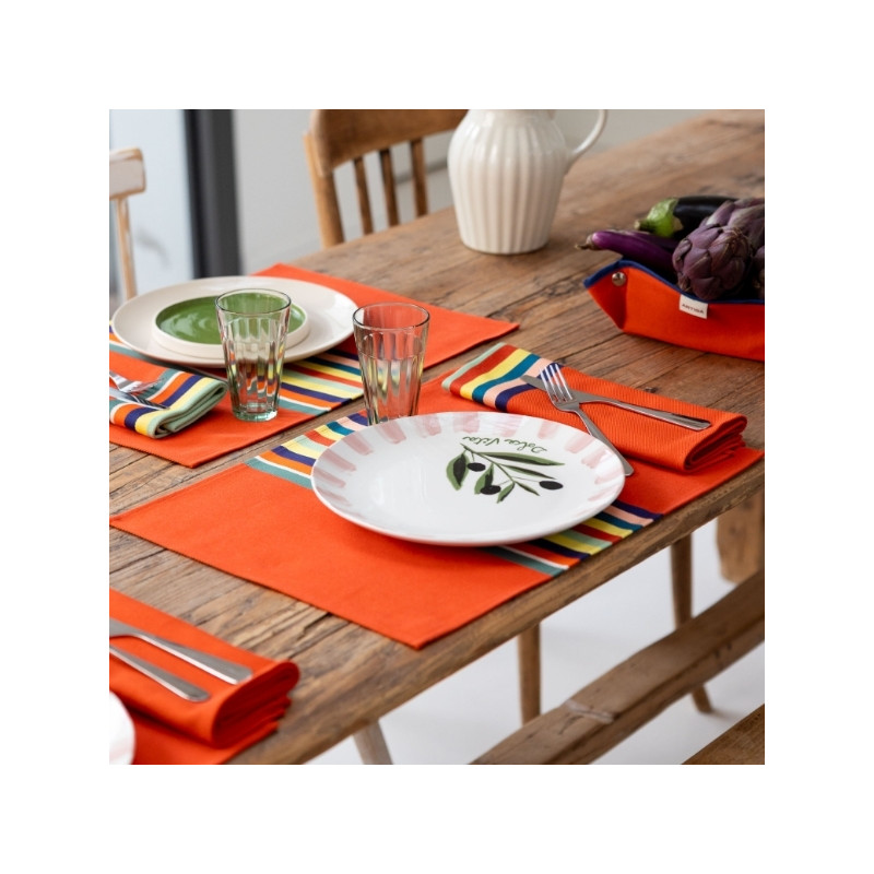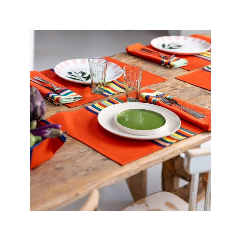 Avec ses dimensions 47 x 35 cm, il offre un espace confortable pour accueillir assiette, couverts et verre, tout en structurant élégamment votre table. À associer avec une nappe Mauléon Orange, des serviettes assorties ou d’autres pièces de l’univers Déjeuner sur l’herbe pour une table harmonieuse et chaleureuse.