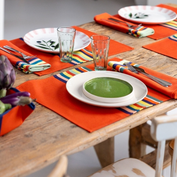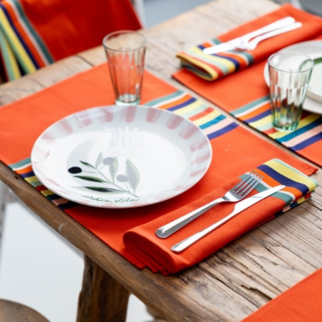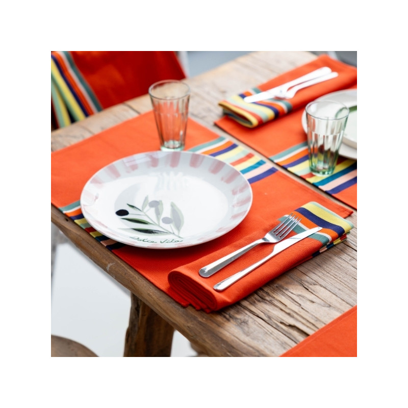 Avec ses dimensions 47 x 35 cm, il offre un espace confortable pour accueillir assiette, couverts et verre, tout en structurant élégamment votre table. À associer avec une nappe Mauléon Orange, des serviettes assorties ou d’autres pièces de l’univers Déjeuner sur l’herbe pour une table harmonieuse et chaleureuse.